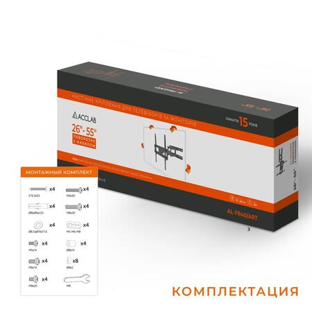 Зручний і сучасний кронштейн, призначений як для телевізорів, так і для моніторів підтримує VESA. Хто має багатоколінчасті конструкцію, яка забезпечує ще більшу свободу переміщення і дозволяє відсунути телевізор від стіни на відстані до 460 мм. Здатний витримати вагу до 35 кг, що підтримує телевізори та монітори з діагоналлю 26-55 дюймів. Перевага кронштейна в швидкому навісі і в легкому використанні. Також поворотний кронштейн дає можливість змінювати положення телевізора по декількох осях, який дозволить знайти оптимальне рішення для практично будь-якого місця перегляду. У комплекті з кронштейном Ви знайдете: органайзер для кабелів телевізора або монітора, кріплення для монтажу та інструкцію по експлуатації продукції.