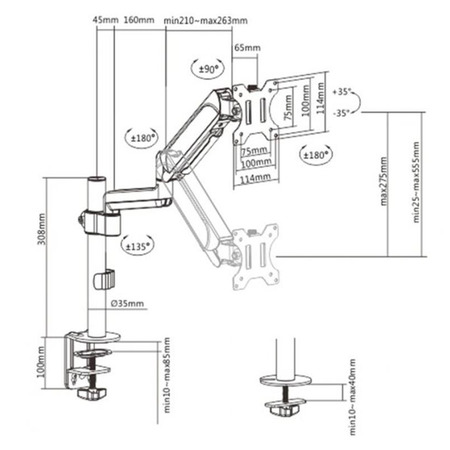 Кронштейн обертається, висувається та втягується, нахиляється для зміни кута читання та дозволяє повертати дисплей з альбомного положення до портретного тощо