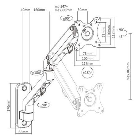 Міцна регульована пружина підходить для моніторів вагою від 2 до 7 кг