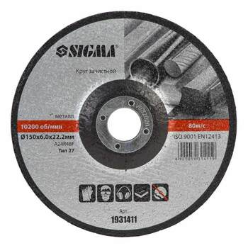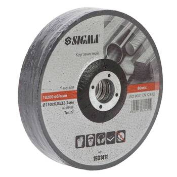 Круг зачисний по металу Ø150×6.0×22.2мм, 10200об/хв SIGMA (1931411) застосовується для шліфування зварних швів і з'єднань після зварювання, для зачистки поверхонь і кромок перед зварюванням, обдирання окалини та видалення іржі.