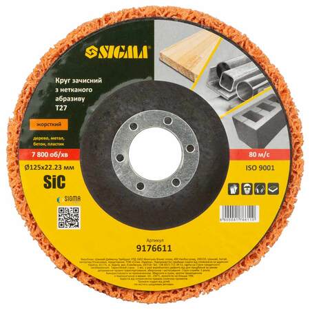 Круг зачистний з нетканого абразиву (корал) Т27 Ø125×22.23мм помаранчевий жорсткий SIGMA (9176611)