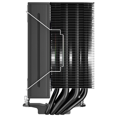 Конструкція асиметричної похилої теплової трубки PS130 відсуває радіатор від зони оперативної пам’яті, ефективно захищаючи оперативну пам’ять від позиційних перешкод радіатора.
