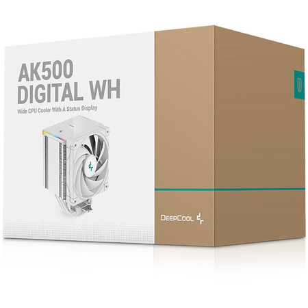 Настала ера цифрових повітроохолоджувачів, і DeepCool з гордістю представляє AK500 DIGITAL. Усе, що вам подобалося в AK500 ZERO DARK, але з елегантним магнітним дисплеєм стану та світлодіодними стрічками ARGB. ЕКРАН СТАТУСУ В РЕАЛЬНОМУ ЧАСІ Кришталево чистий цифровий екран відображає температуру та використання процесора вашої системи в реальному часі, а також є попередження про високу температуру. Керування дисплеєм здійснюється за допомогою простої програми, для якої потрібен лише вільний роз’єм USB 2.0. ПЕРЕВІРЕНИЙ ДИЗАЙН Повністю білий варіант нашого процесорного кулера AK500 із зміщеним прямим дотиком, п’ятьма тепловими трубками в башті, унікальним білим матричним дизайном ребра та високопродуктивним вентилятором FDB, який забезпечує чудове розсіювання тепла та надзвичайно низький рівень шуму. КРУТИЙ, ТИХИЙ І ПОТУЖНИЙ Досягніть високопродуктивного охолодження з мінімальним рівнем шуму завдяки вбудованому вентилятору FK120, який максимізує повітряний потік і статичний тиск, коли це необхідно, і розумно зменшує рівень шуму для тихої ефективності. СУМІСНІСТЬ ПРЕМІУМ DRAM Конструкція теплової трубки під кутом забезпечує вільний доступ до слотів DIMM для кращої сумісності з високими розподільниками тепла, а також демонструє будь-яке освітлення RGB в повному обсязі. Для чотирьохслотових материнських плат задні слоти мають зазор 45 мм.