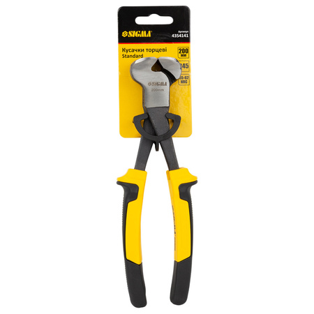 Кусачки торцеві 200мм Standard SIGMA (4354141) – це різновид шарнірно-губцевого інструменту, який призначений для здійснення точних робіт, які вимагають від оператора великої акуратності. Інструмент найчастіше застосовується для різання дроту, різних проводів, а також демонтажу і різання цвяхів, різних кріпильних елементів.