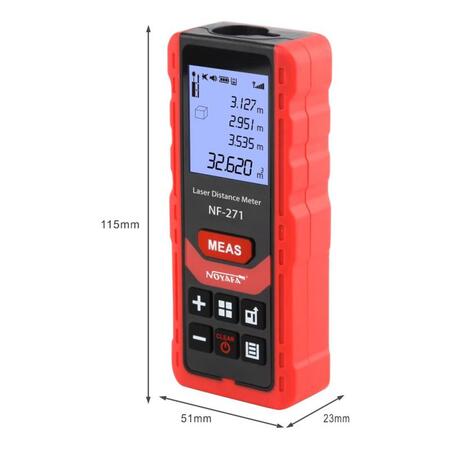 Noyafa NF-271-50 - професійна лазерна лінійка, яка дозволяє вимірювати відстані до 50 метрів з точністю до 0,1 метра. Завдяки функціям віднімання та складання, швидкому розрахунку площ та обсягів, цей далекомір стане незамінним помічником для будь-якого професіонала.
