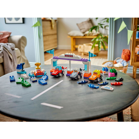 Набір LEGO DUPLO Town під номером 10445 "Автомобілі для перегонів і пілоти команд Формули-1" дійсно існує. Цей набір складається з різноманітних деталей та аксесуарів, які допоможуть дитині створити свій власний світ гонок та автоспорту. Він містить фігурки пілотів команд Формули-1, автомобілі для перегонів та додаткові елементи пристроїв для гонок. Цей набір ідеально підходить для малих дітей, які цікавляться автоспортом та хочуть зануритися в світ гонок.