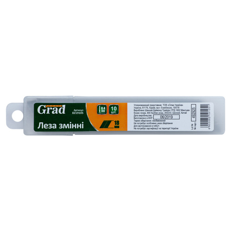 Леза змінні прямі 100×18×0.4мм 7 сегментів 10шт GRAD (8219105) використовуються як змінний елемент для ножів прямої форми, які застосовують при виконанні оздоблювальних робіт: різання шпалер, пінопласту, мінеральної вати, гіпсокартону та інших матеріалів.