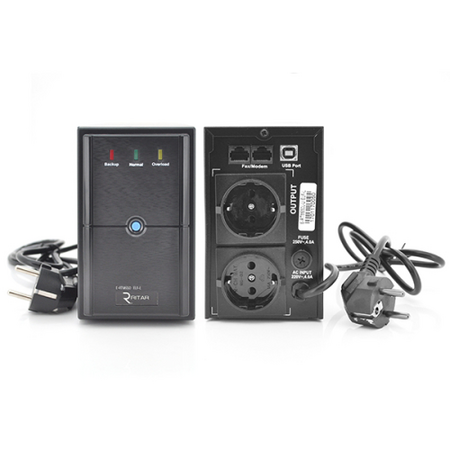 Джерело безперебійного живлення з апроксимованою синусоїдою призначене для автономної роботи компьютерної техніки та переферійного обладнання у офісних та житлових приміщеннях. Характеристики: Номінальна потужність: 650VA / 390Ват Коефіцієнт потужності: 0,6 Тип вихідного сигналу: аппроксимированная (модифікована) синусоїда Вхідна напруга: 220V: 145 ~ 290V AC Вихідна напруга: 220V: 190 ~ 255V AC ± 10% Час перемикання: 2 ≤ 6ms Стабілізація (AVR): 2 ступені (мікропроцесорне управління, крок 22,5V ) Нижні пороги перемикань : 140V ± 5V AC Верхні пороги перемикань : 280V ± 5V AC Частота: 50Hz / 60 Hz Час роботи від батареї при навантаженні 200W: 5,5 хв. Захист від короткого замикання: є Захист від повного розряду батареї: є Аварійне відключення (захист від перевантаження): є Холодний старт : є Наскрізний нуль : є USB інтерфейс : є Захист ліній зв`язку: є Включення / відключення звукової індикації : - Тип індикації: Світлодіоди Normal / Overload / Backup Індикатор заміни батареї: є Герметична батарея: 12В 7 А / г Тип запобіжника: вставка плавка Кількість розеток Schuko: 2 Тип корпуса: метал, колір чорний Робоча температура: 0 - 45 ° С Розмір упаковки (Д*Ш*В), мм: 370*130*210 Розмір пристрою (Д*Ш*В), мм: 310*85*140 Нетто, кг: 4,8 Брутто, кг: