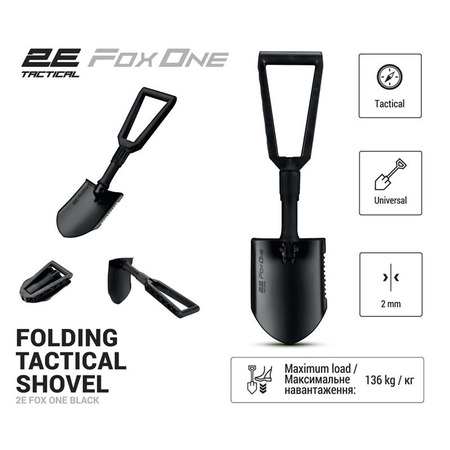 Лопата тактична 2E Fox One Black - це складна лопата від компанії 2E. Вона має довжину 59 см і вагу 1,1 кг. Ця лопата призначена для використання в тактичних ситуаціях, наприклад, для розкопування, відступу або побудови у місцях з обмеженим простором. Лопата компактно складається для зручності перенесення і зберігання.