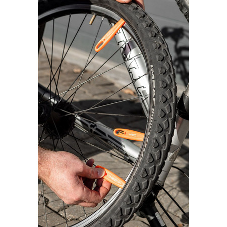Лопатки Neo Tools для велосипедних шин - це набір з трьох лопаток бортувальних, які спеціально призначені для знімання та установки велосипедних шин. Вони виготовлені з нейлону, що робить їх міцними та досить гнучкими для роботи з шинами, не пошкоджуючи їх поверхню. Цей набір лопаток дуже корисний для тих, хто займається обслуговуванням велосипедів вдома або на професійному рівні. Вони дозволяють легко виконувати ремонт шин, заміну камер або шин без надмірних зусиль. Лопатки бортувальні Neo Tools для велосипедних шин є надійним інструментом, який допоможе вам ефективно вирішити проблеми з велосипедними шинами і зробити процес обслуговування велосипеда більш комфортним і швидким.