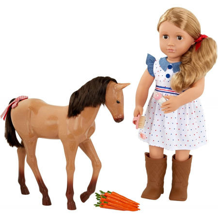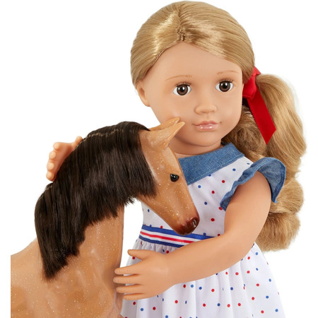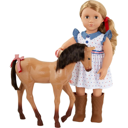 Ця лялька Our Generation називається Шеллі і має розмір 46 см. В комплекті з нею йде лоша Аппалуза та додаткові аксесуари. Код товару - BD31447Z.