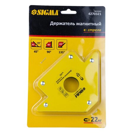 Магніт для зварювання стріла 22кг 90×90 мм (45°, 90°, 135°) SIGMA (4270321) призначений для точної фіксації деталей під виставленим, правильним кутом під час проведення зварювальних робіт, пайки та інших операцій під час виготовлення сталевих металоконструкцій.