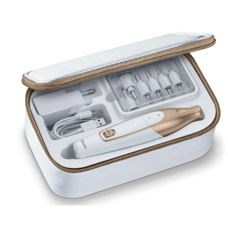 Завдяки зручному дизайну і різноманітним насадкам, ви зможете легко і швидко виконати процедури манікюру та педикюру в комфортних умовах. Крім того, електричний манікюрний набір Beurer MP 64 має регульовану швидкість роботи, що дозволяє вам вибирати оптимальний режим для кожного виду догляду.