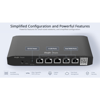 Роутер Ruijie Reyee RG-EG105G-P V3 є високопродуктивним рішенням для використання в домашніх умовах, яке дозволяє зручно і швидко підключити кілька пристроїв до Інтернету. Одна з ключових особливостей цієї моделі — максимальна швидкість WAN до 1 Гбіт/с, що забезпечує стабільне та швидке інтернет-з'єднання, яке підходить для потокової передачі відео, онлайн-ігор та роботи з хмарними сервісами. Крім того, в роутері передбачено чотири порти RJ-45 LAN з такою ж швидкістю, що дозволяє підключати різні пристрої безпосередньо.
