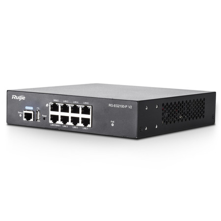 Пристрої EG можуть використовуватися як інтернет-шлюзи в готелях, торгових центрах, університетах, лікарнях, корпоративних мережах та забезпечувати якісну роботу та управління точками доступу, IP-камерами тощо. Технічні характеристики RG-EG2100-P V2 – маршрутизатор Smart Access «все-в-одному» з 8 портами 1000BASE-T, з яких 7 підтримують живлення PoE/PoE+.