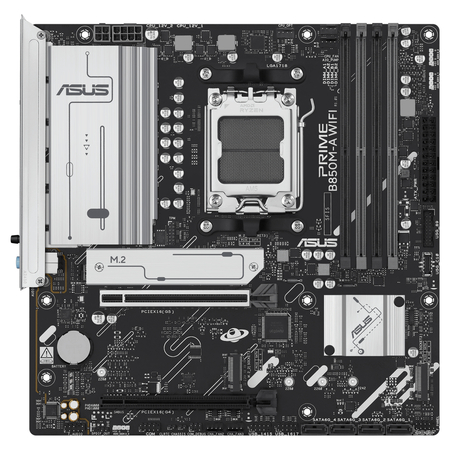 Материнська плата серії Prime B850M-A WiFi пропонує інтелектуальні функції налаштування параметрів за допомогою інтуїтивного програмного забезпечення та ексклюзивних функцій BIOS. Вона створена для сучасних комп’ютерів із ШІ, пропонуючи потужність і комунікаційні можливості, необхідні для вимогливих до ресурсів застосунків зі штучним інтелектом.