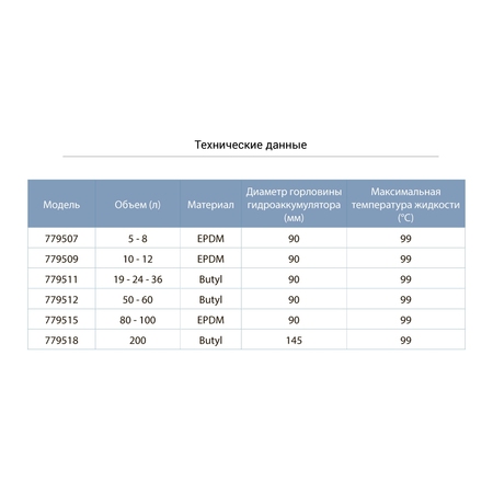 - Діаметр горловини гідроакумулятора (мм): 90;