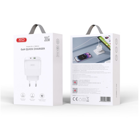 Універсальний мережевий зарядний пристрій XO L138 має два порти - один USB-C Programmable PowerSupply (PPS) потужністю 33Вт / Power Delivery (PD) потужністю 30Вт та один USB-A Quick Charge (QC) 18Вт.