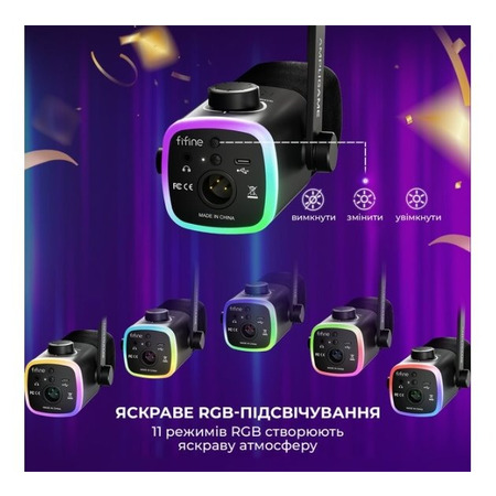 Мікрофон FIFINE AM9 оснащений ефектним RGB-підсвічуванням із 11 режимами, яке додає динаміки та стилю вашому робочому простору. Ви можете обрати м’яке сяйво для спокійної атмосфери або яскраві пульсуючі ефекти для стрімів та ігор. Підсвічування не лише створює настрій, а й підкреслює сучасний дизайн мікрофона, роблячи його помітним елементом у будь-якому сетапі.
