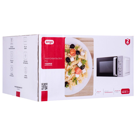 Мікрохвильова піч ERGO Y30MW - незамінна техніка для тих, хто цінує простоту і функціональність. Зручне та зрозуміле механічне керування, а також повноцінний спектр режимів перетворюють ERGO Y30MW у найкращого помічника на будь-якій кухні.