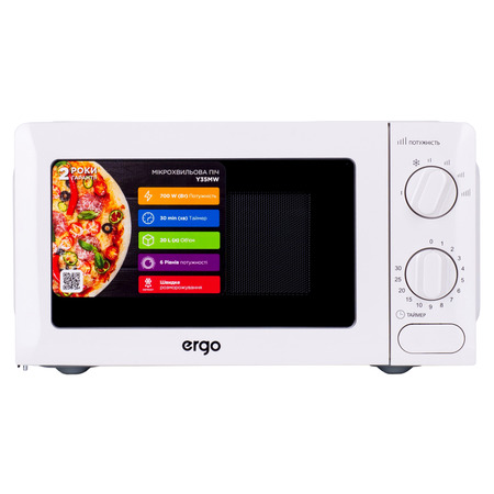 Мікрохвильова піч ERGO Y35MW - техніка, яка чудово підійде для домашньої або офісної кухні. Модель має просте та зручне механічне керування, а також увесь необхідний функціонал для того, аби швидко розігріти чи приготувати їжу.