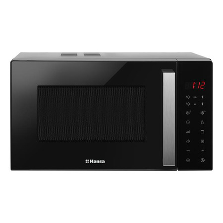 Мікрохвильова піч Hansa AMGF20E1GFBH – компактна 20-літрова модель з електронним керуванням, потужністю 700 Вт та грилем, у стильному чорному дизайні.