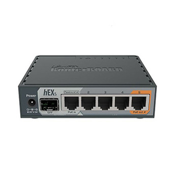 5-портовий маршрутизатор. RouterOS L4, CPU 880 МГц, RAM 256 Мб. Downlink порти: 4x RJ45 (1000M); Uplink порти: 1x RJ45 (1000M), 1x SFP (1.25Гб / с); USB 2.0. DC 12В-57В, passive PoE і 802.3af / at на 1м порту. -40º до + 70ºC; 113х89х28 мм.