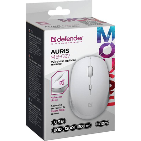 Бездротова миша Defender Auris MB-027 у білому кольорі — це зручний та універсальний аксесуар, який ідеально підходить для офісної та домашньої роботи. Вона оснащена оптичним сенсором з можливістю налаштування роздільної здатності до 1600 DPI (800/1200/1600), що забезпечує точність і швидкість позиціювання курсора.