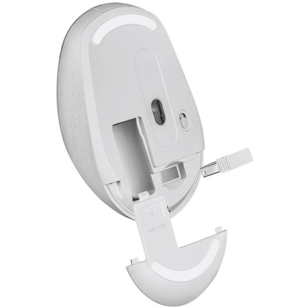Миша має симетричну форму, що робить її комфортною як для правшів, так і для шульг. Вона підключається за допомогою компактного USB-ресивера, який можна зберігати всередині корпусу. Компактний розмір та ергономічний дизайн забезпечують зручність використання протягом усього робочого дня.