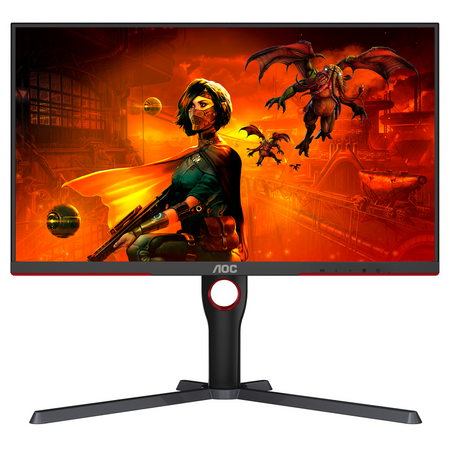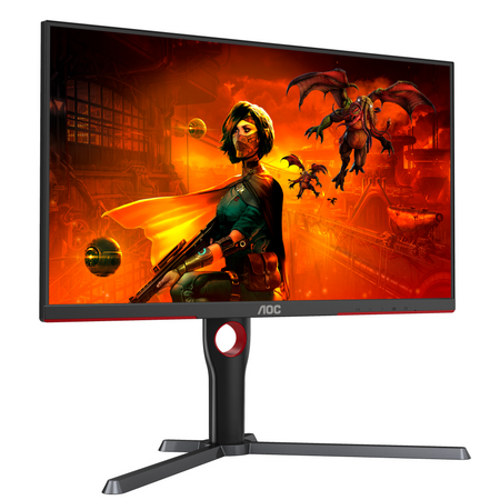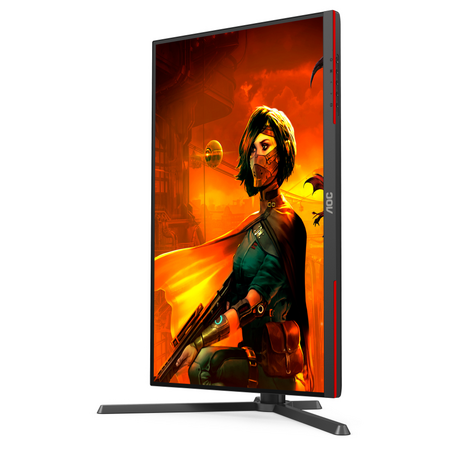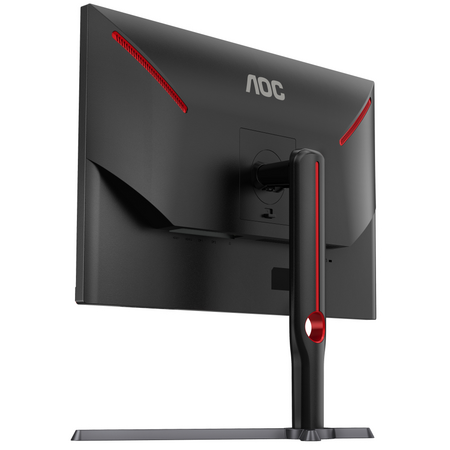 Дизайн монітора AOC U27G3X/BK включає чорне корпус з червоними елементами, що надає йому стильний та агресивний вигляд. Монітор також має різні порти підключення, включаючи HDMI та DisplayPort, що дозволяє легко підключати його до різних пристроїв.