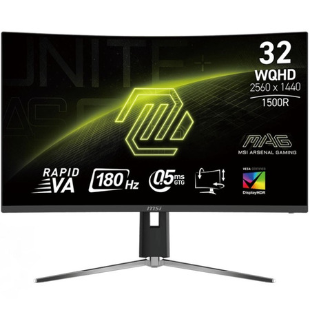 Монітор підтримує частоту оновлення 180Гц і час відгуку 0.5мс, що забезпечує плавне і якісне відтворення графіки. Кривизна екрану становить CURVED, що дозволяє поглиблювати відчуття присутності в грі або фільмі.