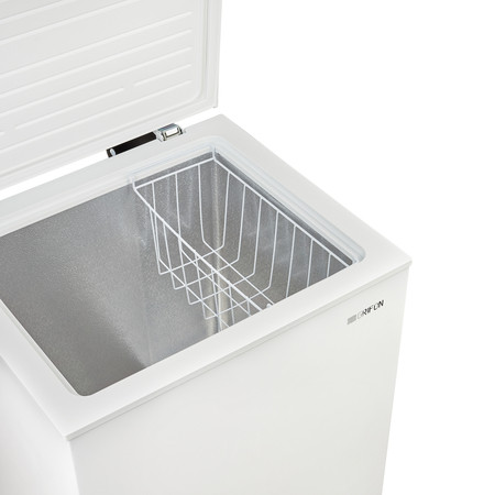 Загальний об’єм скрині Grifon GRML-150M — 142 літри. Це єдина ніша, в яку можна скласти річний запас морожених фруктів та овочів, напівфабрикатів, м’яса та риби. Для зручності комплектація доповнена металевою корзиною, в яку можна покласти те, що може знадобитись раніше за все — упаковку морозива чи пакети з пельменями. Рекомендуємо не розміщати поруч м’ясо та овочі, фрукти та рибу, щоб уникнути виникнення неприємних запахів продуктів.