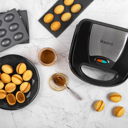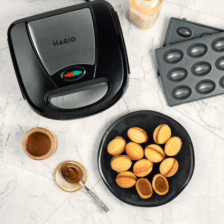 Мультимейкер Magio MG-379 оснащений змінними панелями, які дозволяють готувати різноманітні страви. У комплект входять насадки для горішків, вафель, гриля та пончиків, що робить пристрій універсальним інструментом для приготування як солодких, так і солоних страв. Це означає, що ви можете легко перемикатися між різними режимами приготування, не вдаючись до використання додаткових приладів.