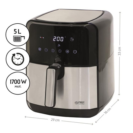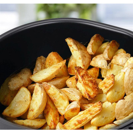 Ідеально золотаво-коричнева скоринка. Експлуатація проста та безпечна завдяки високоякісним нагрівальним елементам з нержавіючої сталі, відстроченню запуску (0-24 години), таймеру на 60 хвилин з автоматичним вимкненням та термоізольованому пластиковому корпусу. Кошик для смаження з антипригарним покриттям легко мити в посудомийній машині.