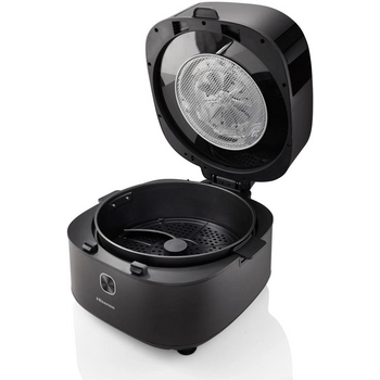 Аерофритюрниця Hisense готує здорові варіанти улюблених страв вашої сім’ї без або з низьким вмістом жиру, використовуючи невелику кількість олії або зовсім без неї. Гаряче повітря швидко розподіляється циклонічним шляхом, що забезпечує ідеальний дотик до вашої їжі. Якщо ви хочете отримати хрусткий смак, використовуйте краплю олії. Ви також можете використовувати фритюрницю для розігрівання інгредієнтів. Насолоджуйтесь улюбленою смаженою їжею до 85% меншим вмістом жиру, ніж традиційне смаження.