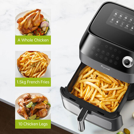 Додаток Wi-Fi, Сенсорний екран, Прозоре вікно, Рецепти 100+, Розігрів 200°С (за 5 хв), Відкладений Старт, Теплоізоляційна ручка, Можна використовувати в посудомийці