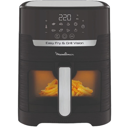Відкрийте для себе цей прилад 2 в 1, щоб готувати корисні та смачні страви на грилі за допомогою одного аксесуара! Easy Fry & Grill Vision оснащений вбудованим литим грилем для приготування ніжних та соковитих овочів або м’яса, запечених до досконалості, та технологією Moulinex Extra Crisp. Знімне віконце дозволяє спостерігати за приготуванням страви, не відкриваючи кошика, що забезпечує повний спокій. Завдяки 8 автоматичним програмам, інтуїтивно зрозумілій цифровій панелі управління та практичної функції таймера досягти видатних результатів ще ніколи не було так просто.