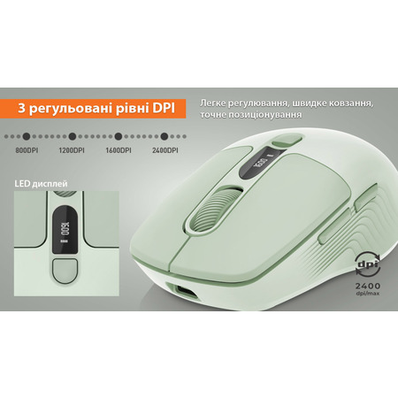 Завдяки регульованій роздільній здатності сенсора (800/1200/1600/2400 DPI), мишка гарантує точність і плавність рухів для різних завдань - від продуктивної роботи до динамічних ігор.