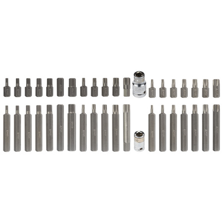 Набір біт HEX TORX Spline 10мм 40шт S2 (метал кейс) ULTRA (4017092) призначені для професійного використання. Виготовлені з легованої інструментальної сталі S2 з поверхневим зміцненням до твердості 58-61 HRC струмами високої частоти (СВЧ). Мають проточенну головну частину для роботи у вузьких місцях.