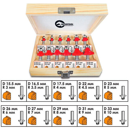 Фрези є інструментом з одним або декількома різальними лезами. У наборі HT-0077 представлені фрези, що призначені для створення різних профілів по крайці дерев'яної заготовки.