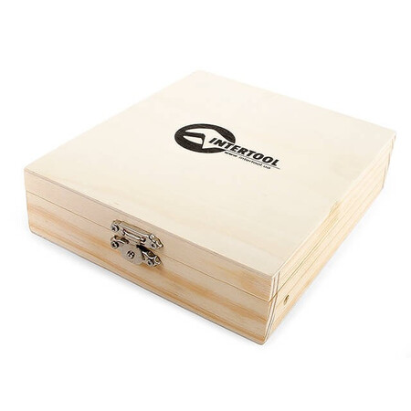 Весь комплект розміщується у дерев'яному футлярі для зручного зберігання та перенесення, з металевим замком для надійності.