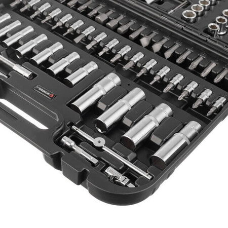 Ви легко дістанетесь кріплень у важкодоступних місцях, завдяки наявності високих торцевих головок, карданів та подовжувачів. Великий вибір біт (SL, PZ, PH, TORX, HEX) допоможе впоратися з різними типами шліцьових з’єднань, які використовують під час ремонту меблів, електротехніки та автомобілів. Головки для свічок запалювання з гумовою накладкою дозволяють замінити свічки запалювання без особливих зусиль, 16 та 21 мм.