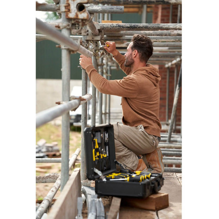 НИЖНІЙ ОТСЕК: ріжкові ключі 8-9-10-11-12-13-14-15-16-17-19 мм,. торцевий ключ ? дюйма STMT82663-0,. перехідник для біт ? дюйма,. універсальний шарнір ? дюйма,. ? дюйма трубчасті подовжувачі 75-150 мм,. комплект насадок 1-13-902 (FL 4-4,5-5,5-6-8 мм, PH 0-