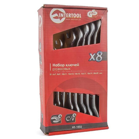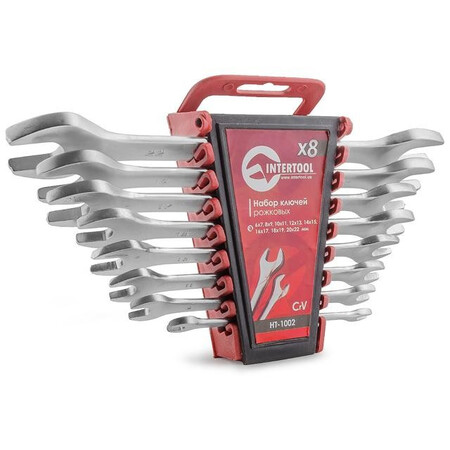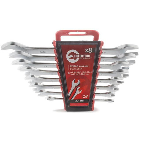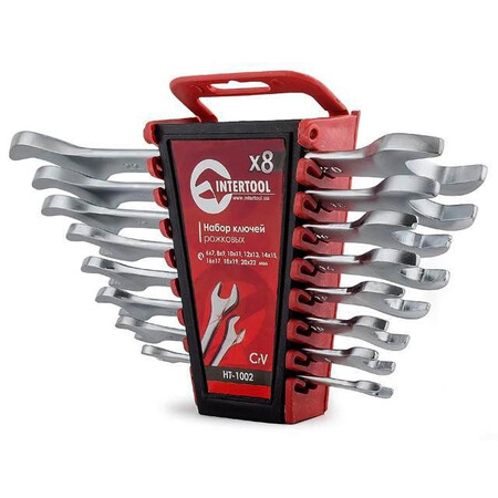 До набору INTERTOOL HT-1002 увійшли ріжкові ключі, розмірами: 6х7; 8х9; 10х11; 12х13; 14х15; 16х17; 18х19; 20х22 мм. Це дозволяє обрати необхідний розмір під будь-які завдання для монтажу та демонтажу різьбових з'єднань гайок та болтів.