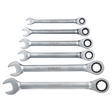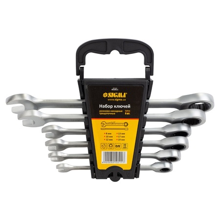 Набір ключів ріжково-накидних з тріскачкою 6шт (8, 10, 12, 13, 17, 19мм) CrV satine SIGMA (6010511) - використовується для роботи з болтовими з'єднаннями (для відкручування або закручування гайок і болтів).