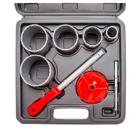 Коронки з карбід-вольфрамовою крихтою призначені для точного свердління наскрізних отворів у різних матеріалах, таких як керамічна та кахельна плитка, пористий бетон, цегла, шифер тощо. Ідеально підходять для створення отворів для розеток, вимикачів, труб та комунікацій, з можливістю вибору оптимального розміру. У комплекті коронки діаметром 33, 53, 67, 73, 83 мм.