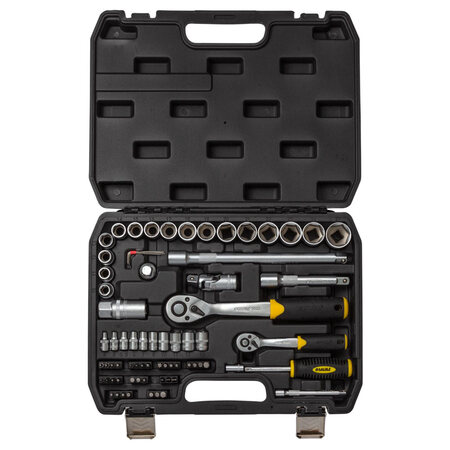 Набір насадок торцевих і біт 1/4", 1/2" 72шт CrV mid SIGMA (6003741) призначений для роботи з різьбовими з'єднаннями при ремонті і обслуговуванні автомобілів. Інструменти виготовлені з вуглецевої сталі і мають оцинковане покриття. Поставляються в компактному пластмасовому футлярі.