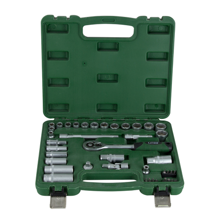 Набори GRAD - лінійка для побутового використання. Набори підходять як для виконання нескладного автомобільного ремонту, так і для побутового застосування. Інструменти виготовлені з міцної інструментальної сталі і мають тришарове покриття (Nickel X2 + Chrome). Для комфортного зберігання та транспортування, набори поставляються в кейсі, який виготовлений з міцного АБС-пластику з металевими замками.