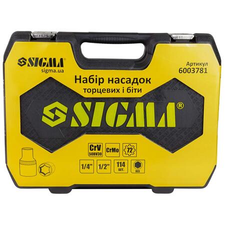 Набір насадок торцевих і біти 1/4" 1/2" 114шт CrV SIGMA (6003781) призначений для роботи з різьбовими з'єднаннями при ремонті і обслуговуванні автомобілів.