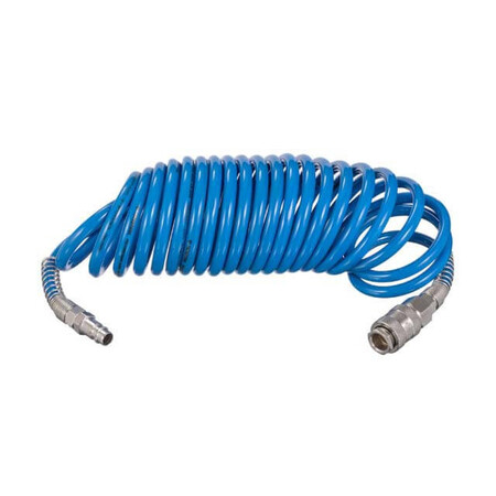 Шланг повітряний з ПВХ використовується для повітряних магістралей пневматичного обладнання. Шланг дуже гнучкий та здатний розтягуватися до 5 метрів, а у згорнутому вигляді займає мінімум місця, не плутається під ногами. Виготовлений з полівінілхлориду, він дуже легкий, стійкий до стирання, зносу, мастил та жиру. Стінки шланга витримують робочий тиск до 15 атм. Завдяки спеціальним спіральним обмежувачам на кінцях шланга забезпечується цілісність виробу, він захищений від заломів та можливих пошкоджень. Стійкий до низьких температур, не затвердіє на морозі та залишається таким же гнучким.
